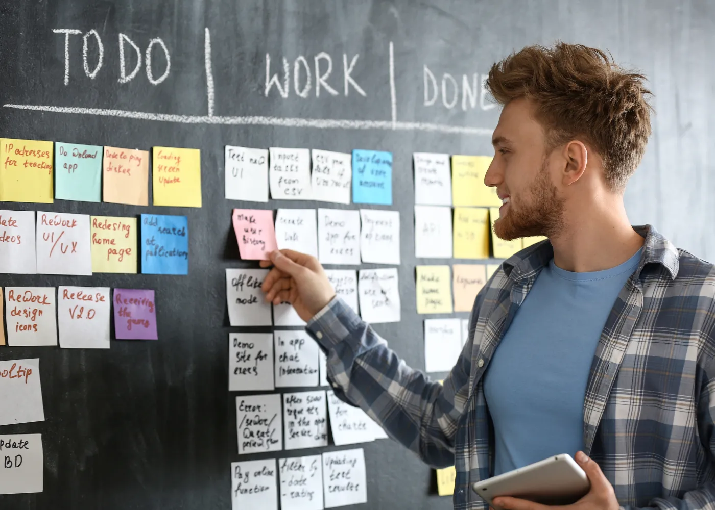 Kanban boards are visualizations of projects and feature in many task management tools. Tasks begin on the left of the board and move towards the right as they are worked on.
