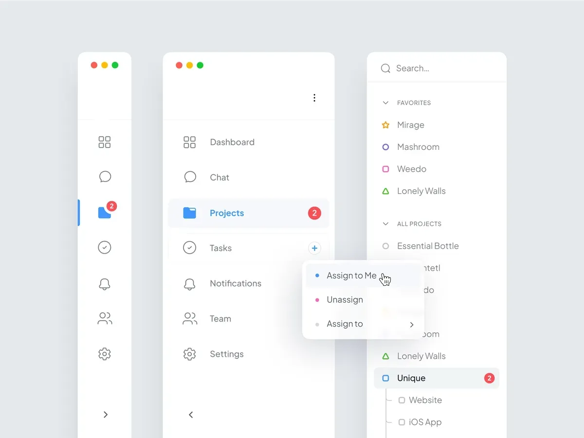 Make it shine. Customize your projects by choosing the perfect icon and color for your sections, project icons and tags.