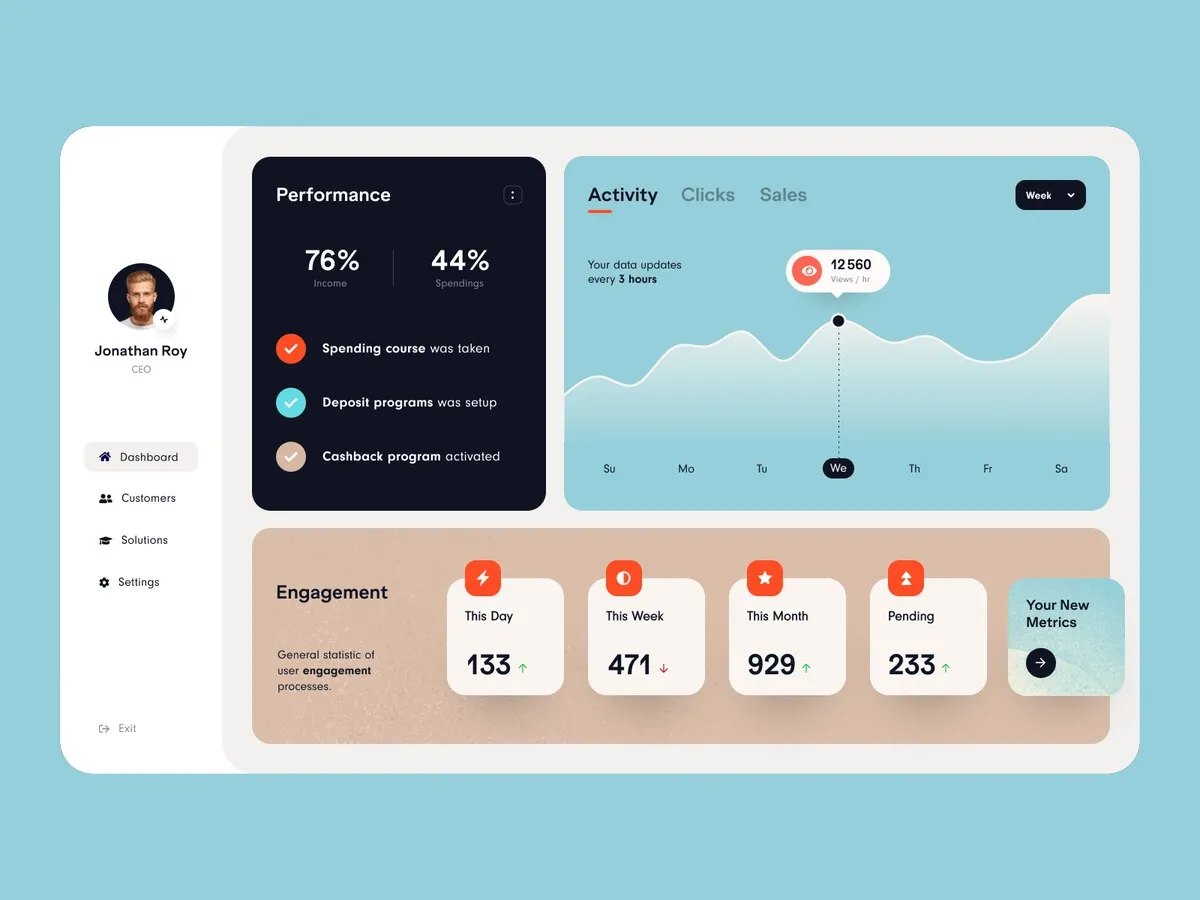 Welcome home. Your customizable dashboard includes a personal checklist, notifications and time tracking information.