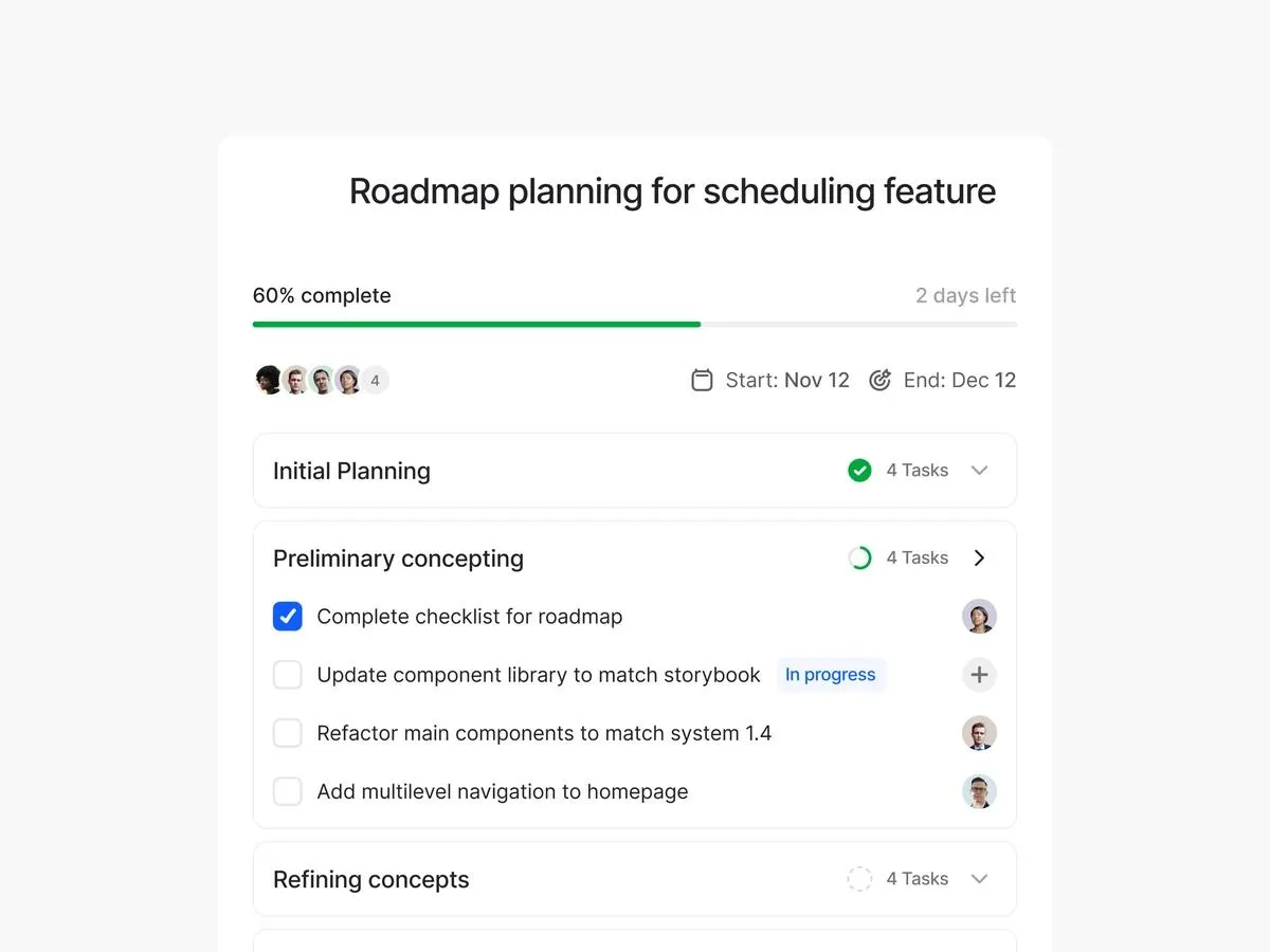 Right on time. Set due dates to keep your team informed about what’s needed, when. See overdue tasks from the project board!